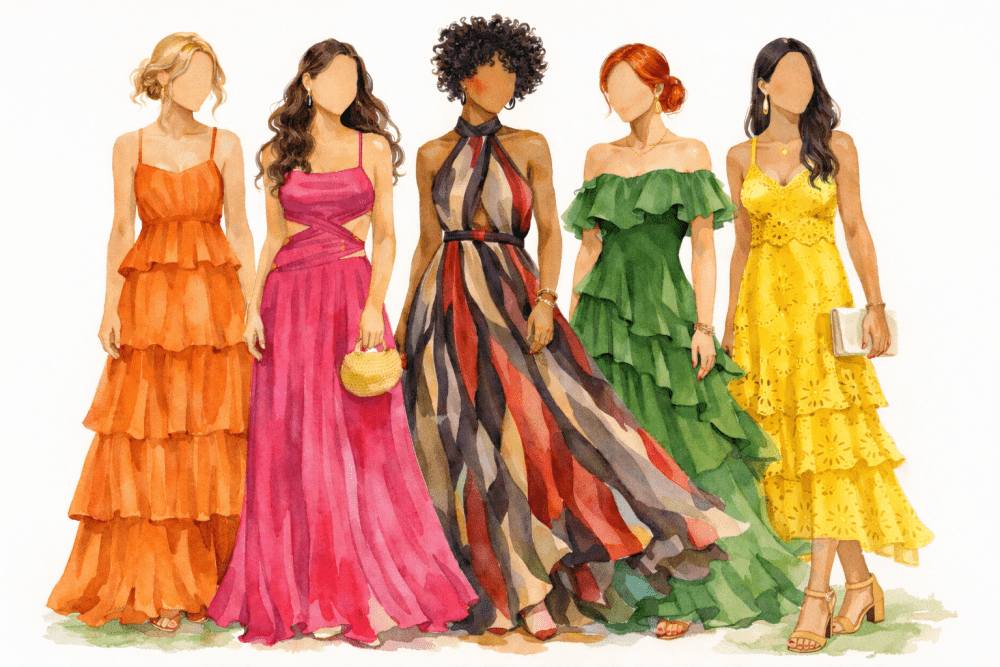 Abusem das cores, estampas e texturas, elas combinam com o clima leve do nosso dia especial.